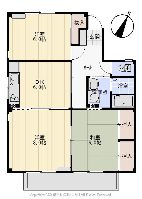 徒歩10分圏内にスーパー、銀行、郵便局、病院、公園があります。 和室の多い間取ですが、3DKとしてはリーズナブルな賃料です。 |