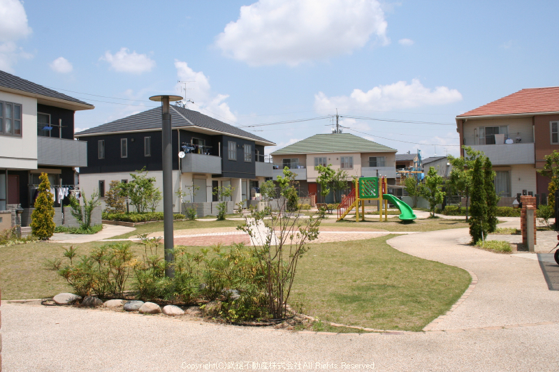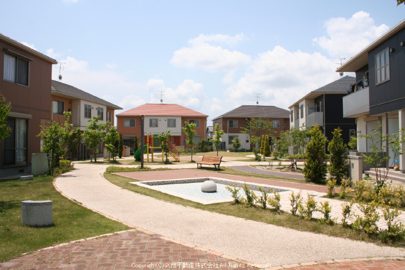 5,607uの敷地にシャーメゾンが9棟建ち並び、中央が公園になっています。