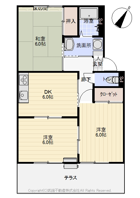| 内装リフォーム済 @壁・天井クロス、床CFの全面貼替え。 Aキッチン、洗面台を交換。 B設備(エアコン交換。温水洗浄便座、TVインターホンを追加。) |