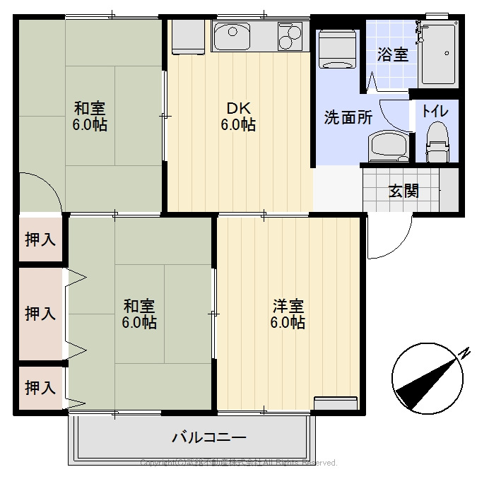 徒歩10分圏内にスーパー、銀行、郵便局、病院、公園があります。 和室の多い間取ですが、3DKとしてはリーズナブルな賃料です。 |