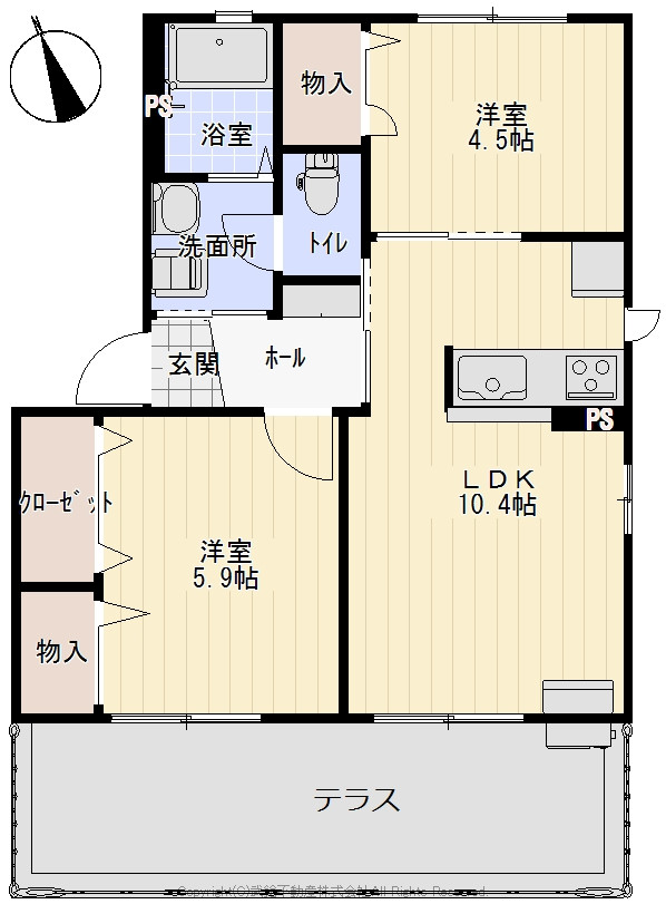 | 内装リフォーム済 @壁・天井クロス、床CFの全面貼替え。 Aキッチン、洗面台を交換。 B設備(エアコン交換。温水洗浄便座、TVインターホンを追加。) |