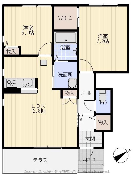 3DK 55.1m2 ( 16.66坪 ) |